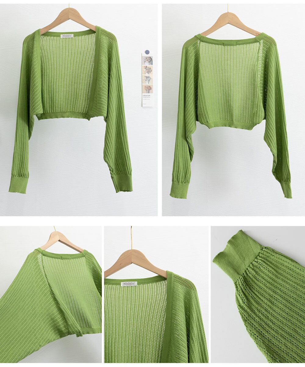 レディース クロップド丈 透かし編みニットカーディガン 冷房対策 ゆったり体型カバー 春夏長袖羽織 韓国風メッシュニット