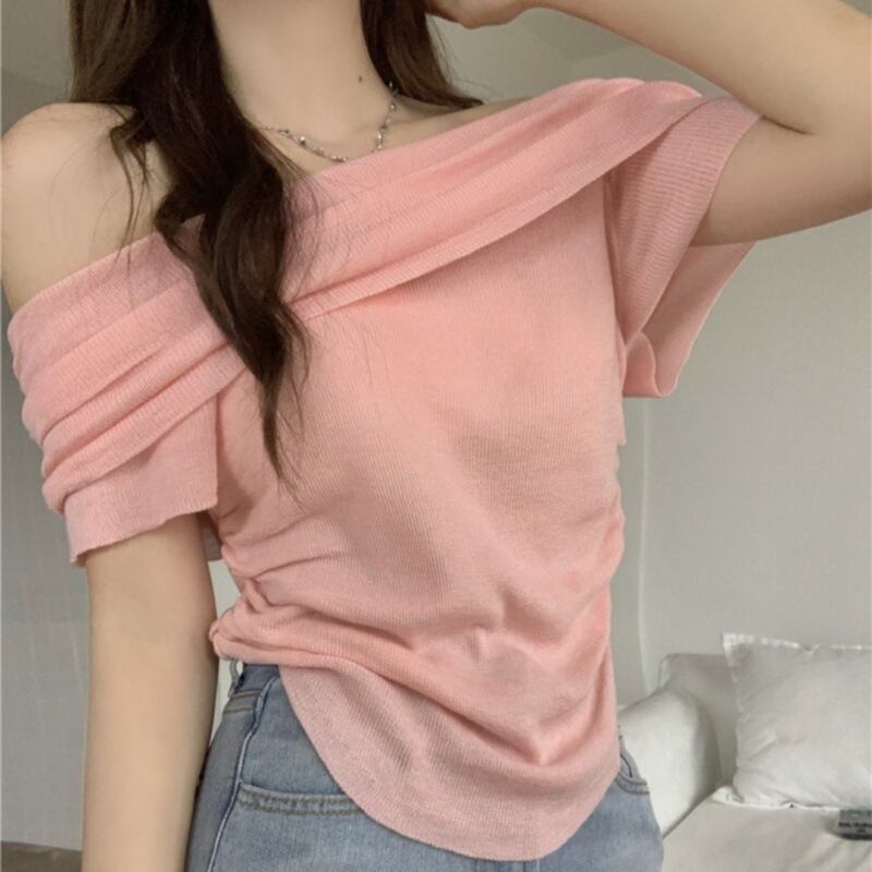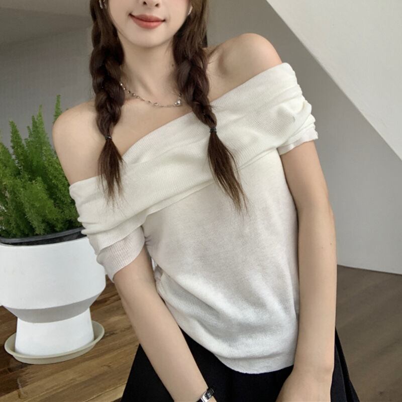 2025新作 Tシャツ カットソー レディース 肩見せ ショート丈 春 夏 無地 オフショルダー サマーブラウス