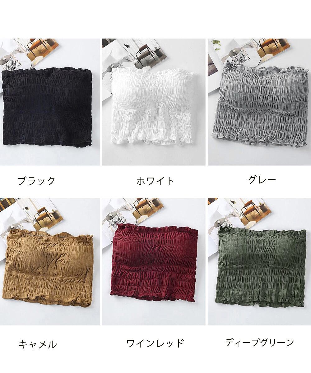 オフショルダートップス フリル シャーリング クロップド丈インナー ブラキャミ ストレッチ 韓国ファッション ベアトップ