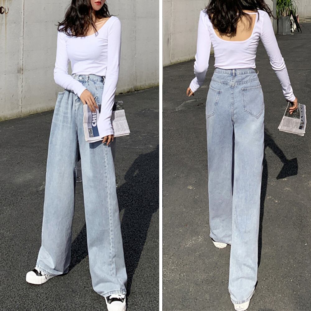 【日本倉庫即納】 ハイウエスト デニム ワイドパンツ 韓国