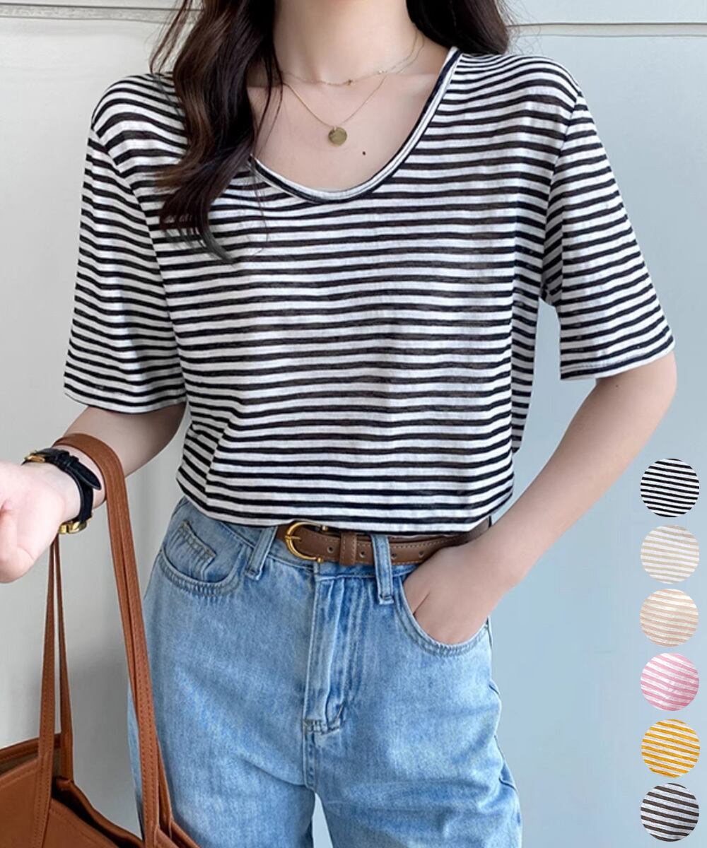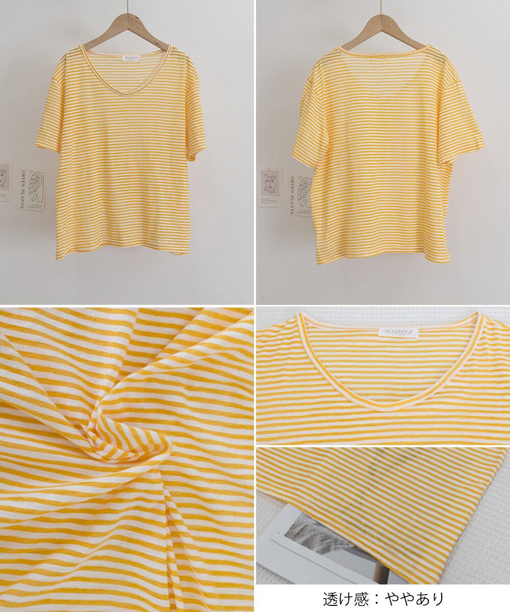 【日本倉庫即納】 ボーダー柄Tシャツ Vネックカットソー夏