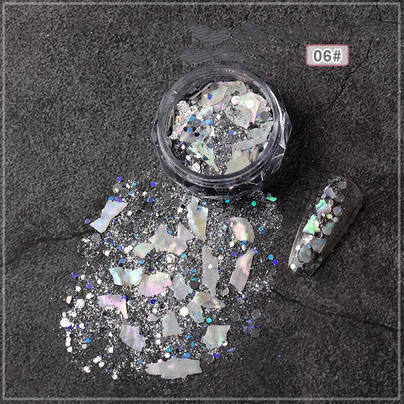 シェル クラッシュ ネイル パーツ シェルフレーク ケース入り ミックス ホログラム ラメ 埋込み フラッシュ