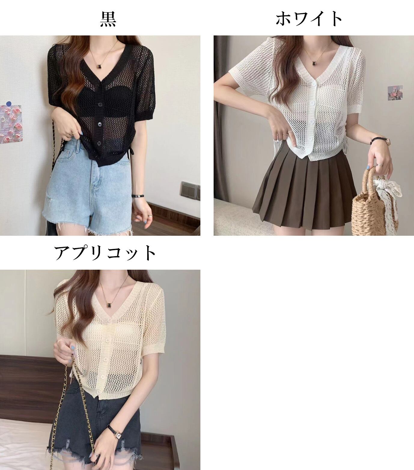 レディース Vネックカーディガン 長袖 日焼け防止 寒さ対策 透け感 メッシュ