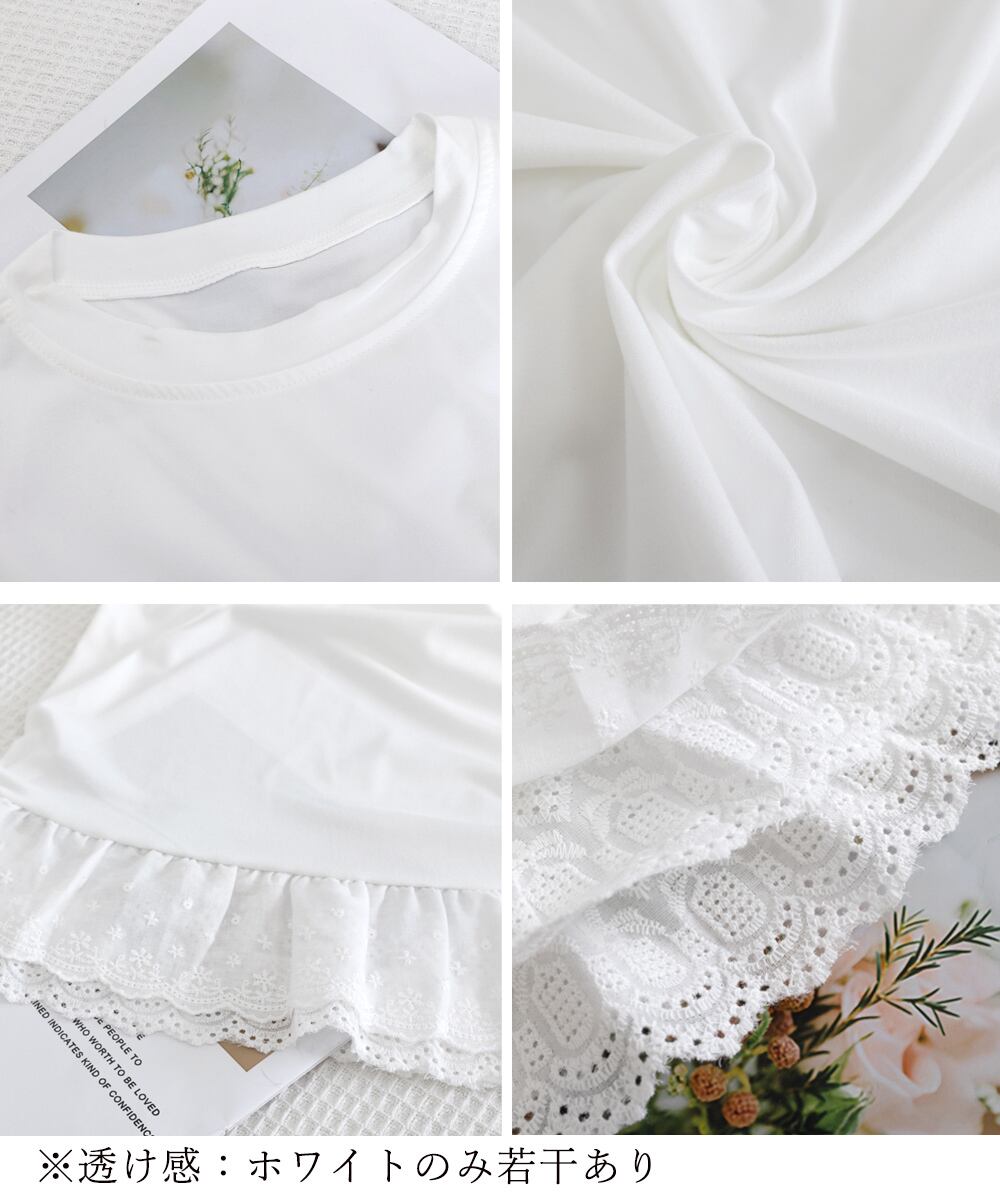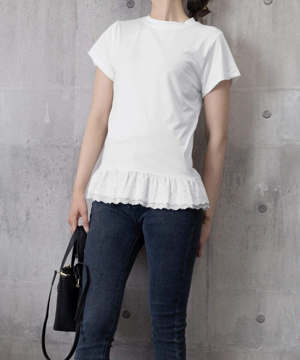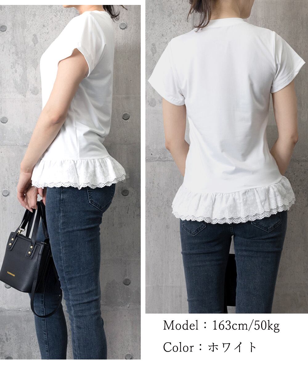 【日本倉庫即納】 Tシャツ 裾レース切替 カットソー 夏服