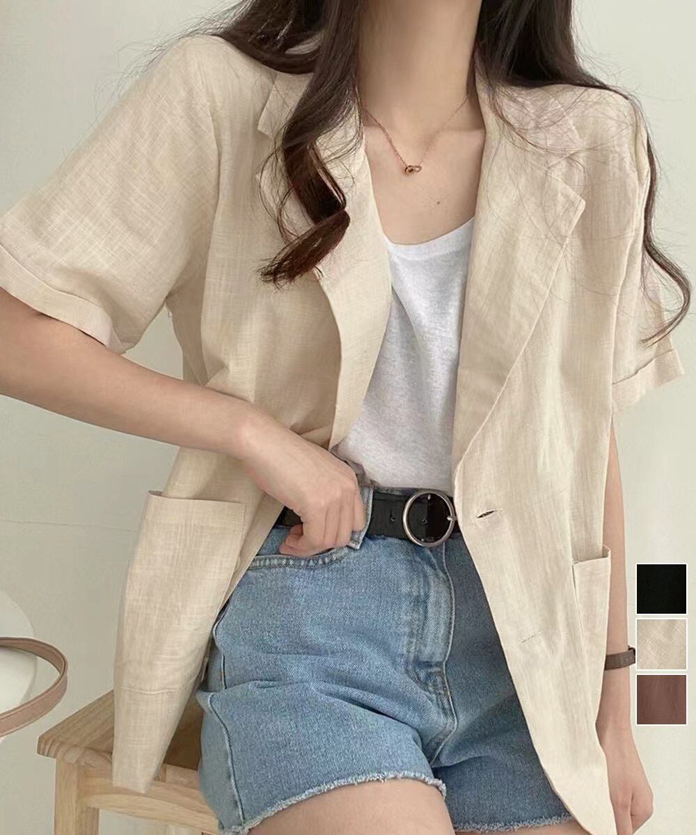 涼しげな綿麻素材で仕立てた半袖のテーラードジャケット。