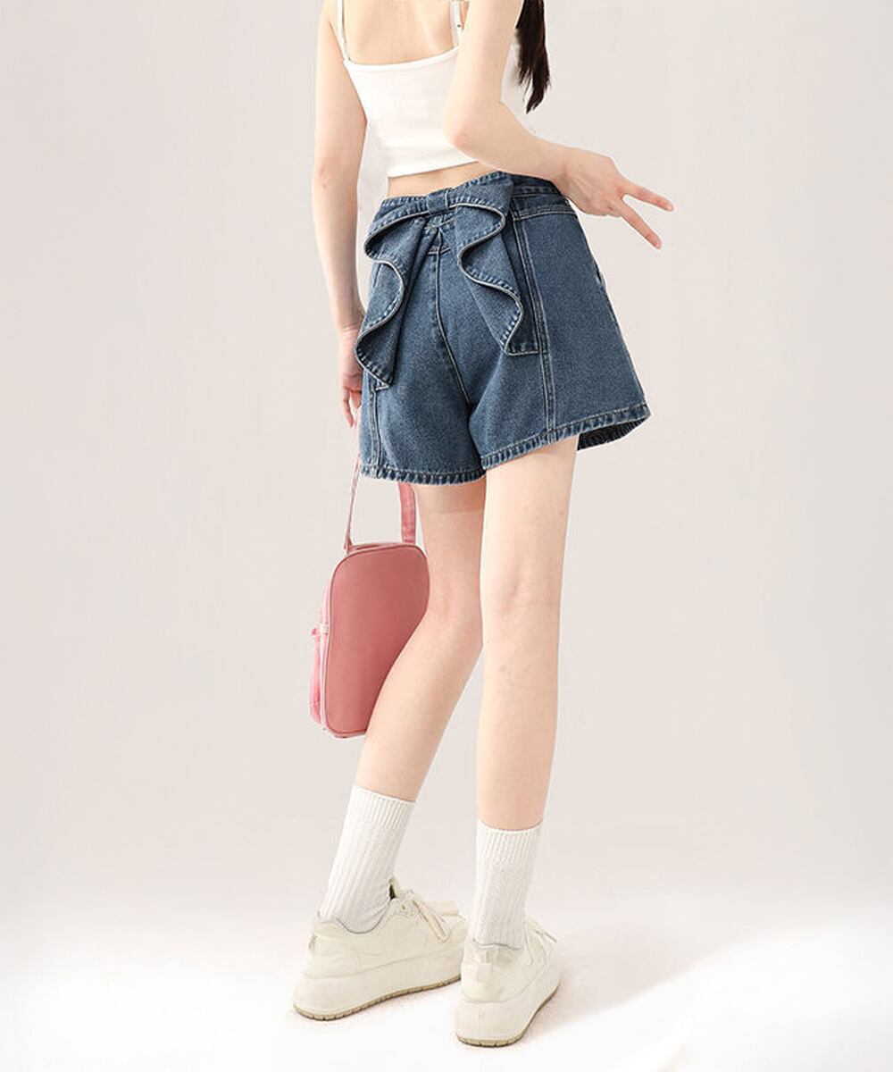 美脚&脚長見せでスタイルアップ!バックリボンがポイントのガーリーなデニムショートパンツが登場。