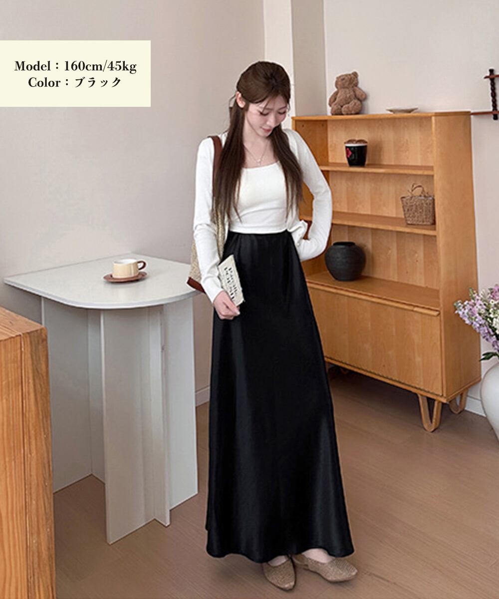 しっとりとした艶感が魅力のサテンロングスカート。