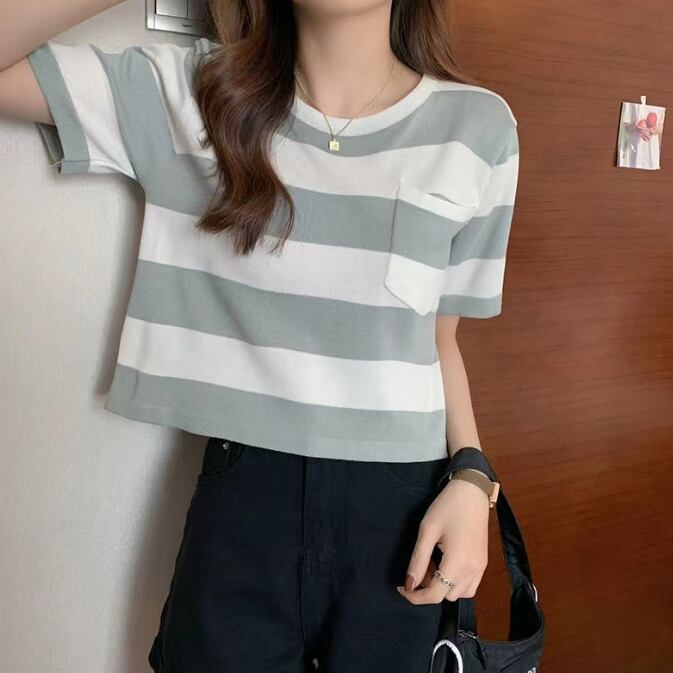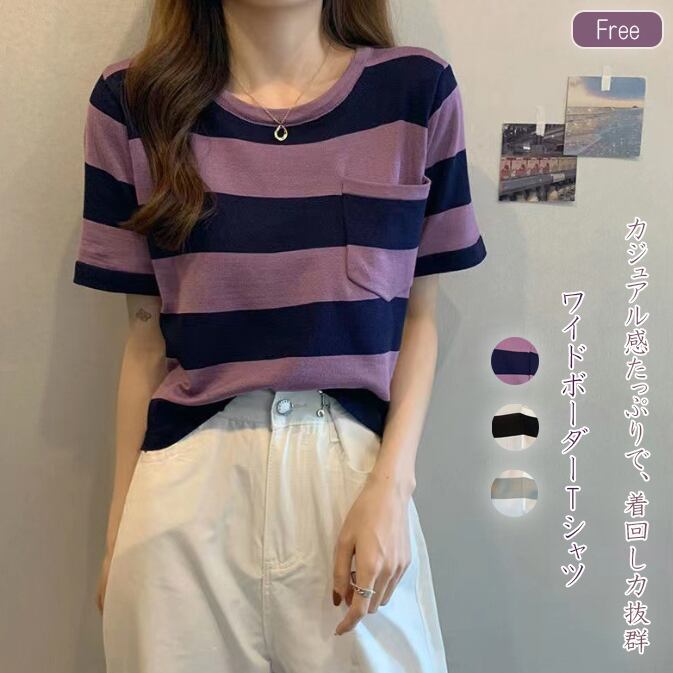 レディース Tシャツ 半袖 ワイドボーダープルオーバー トップス 体型カバー