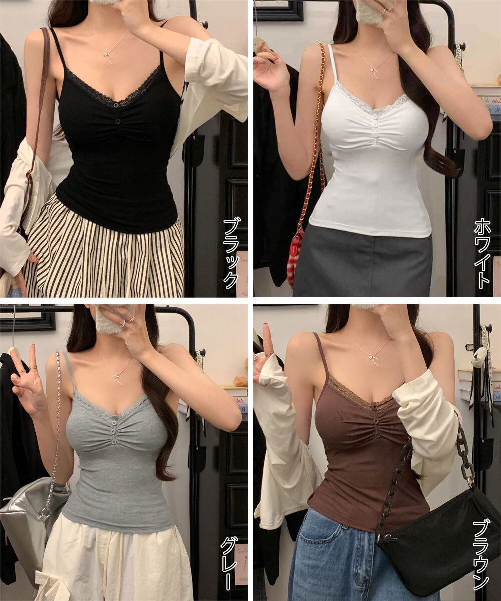 レディース Vネックキャミインナー 重ね着インナートップス ボタン付き シンプル肌着 フェミニンリブブラキャミ セクシー