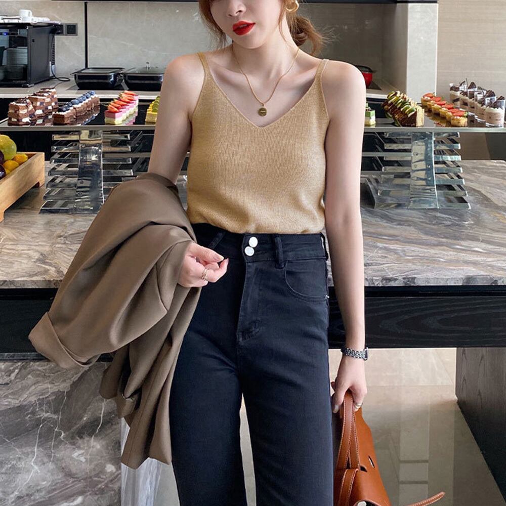 【日本倉庫即納】 フロントVカット リブニットキャミソール