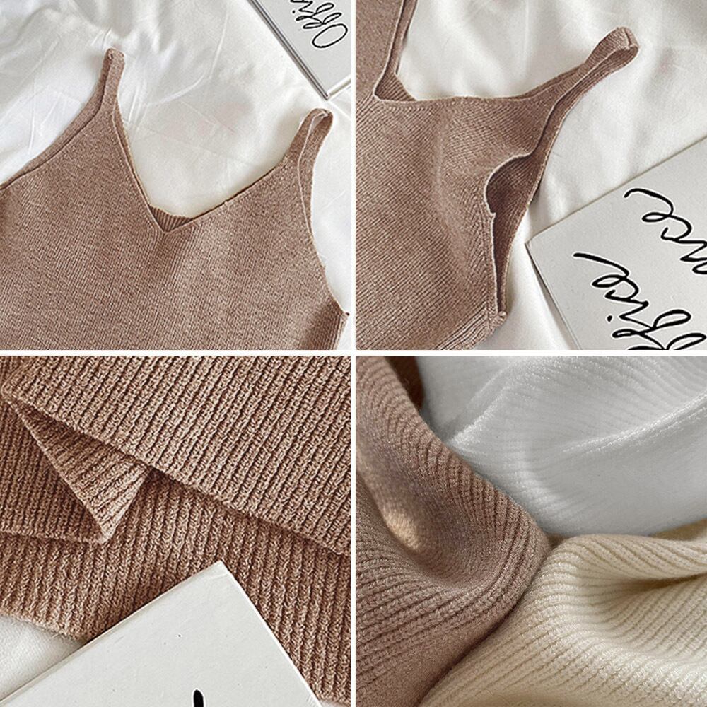 フロントのVカットデザインがポイントの細ストラップニットキャミソール