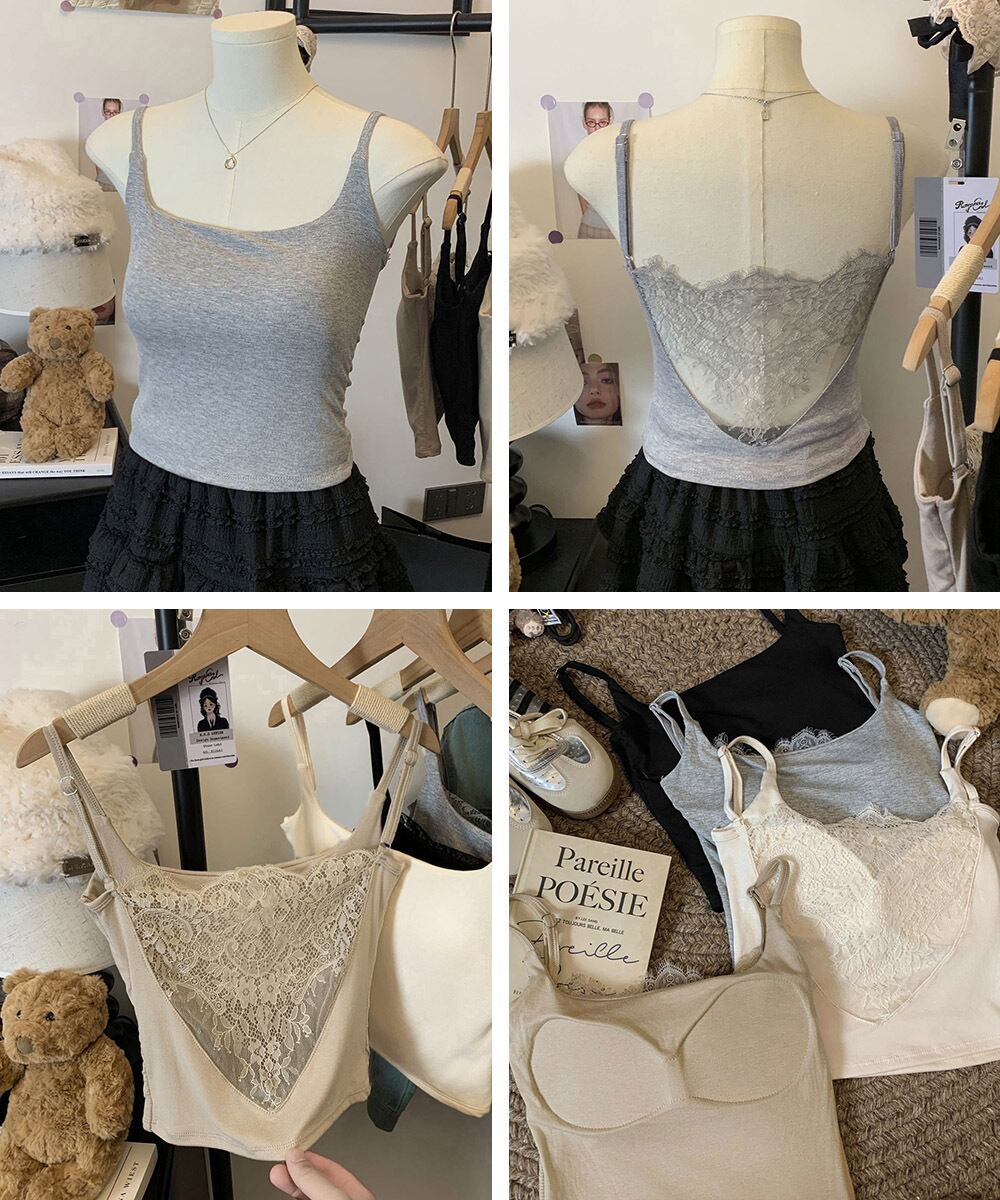 【日本倉庫即納】 レース切替キャミソールカップ付きインナー