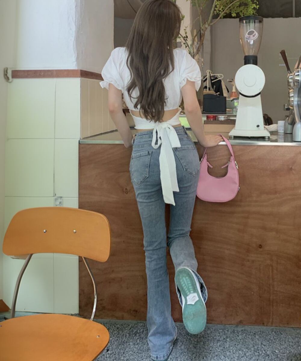 デニムやハイウエストボトムと合わせて、メリハリのあるスタイルに。