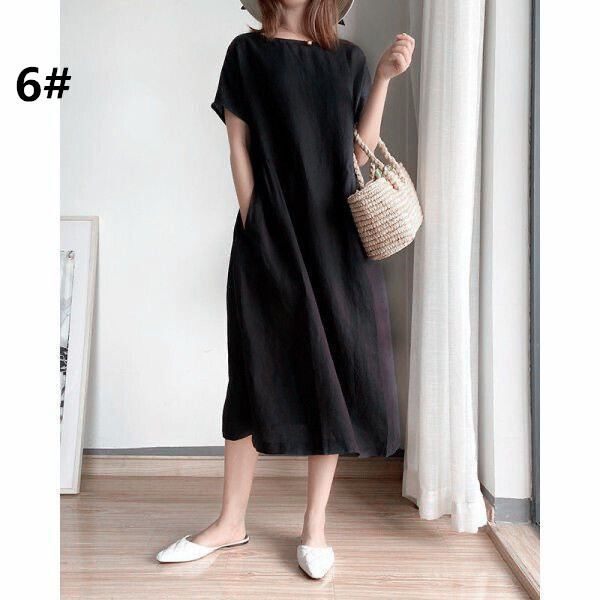 ワンピース 半袖 レディース ゆったり ロング丈 ラウンドネック 体型カバー ナチュラル シンプル デート