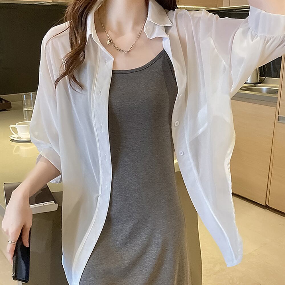 シフォン トップス/シンプル アウター/春夏 カーディガン