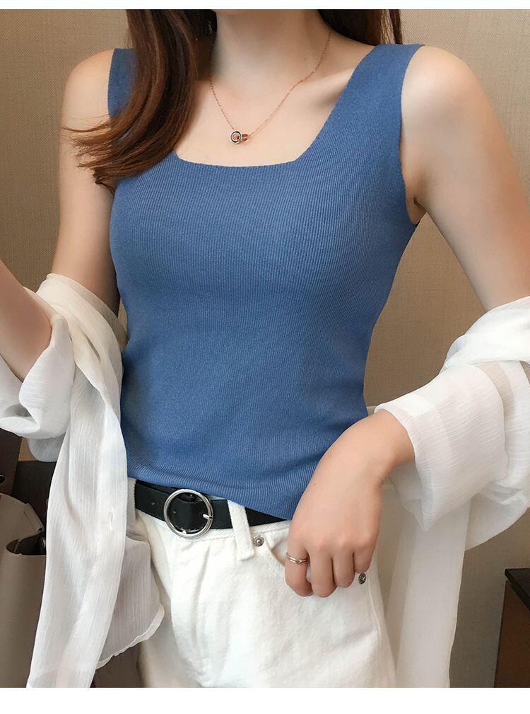 レディース ニット 冷感 タンクトップ ノースリーブ インナー 伸縮性 大人 無地 通勤 スクエア