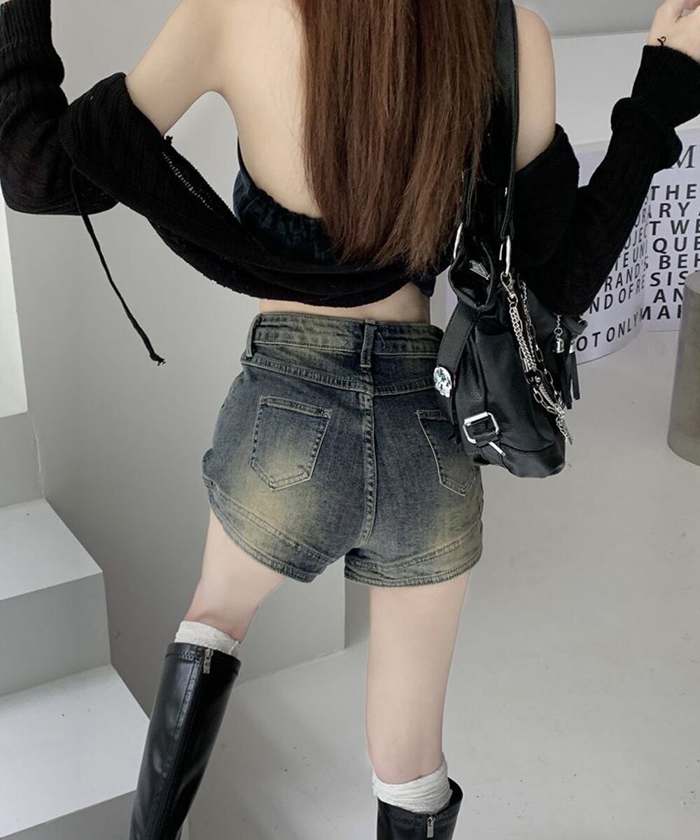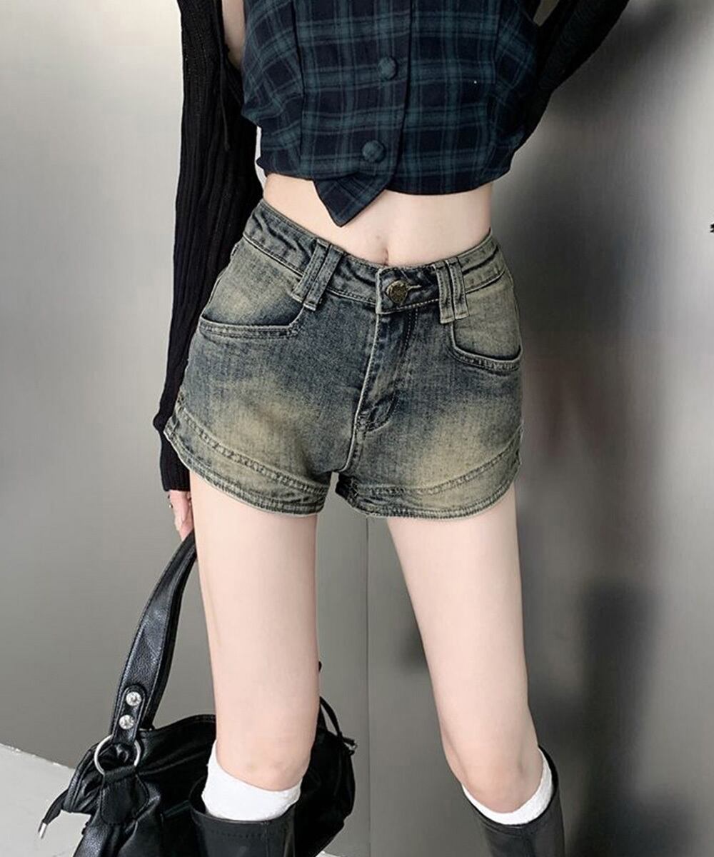 ブリーチデニムショーパン 美脚脚長ジーパン おしゃれ アメカジホットパンツ細見え 美尻ジーンズ レトロ短パン オルチャン