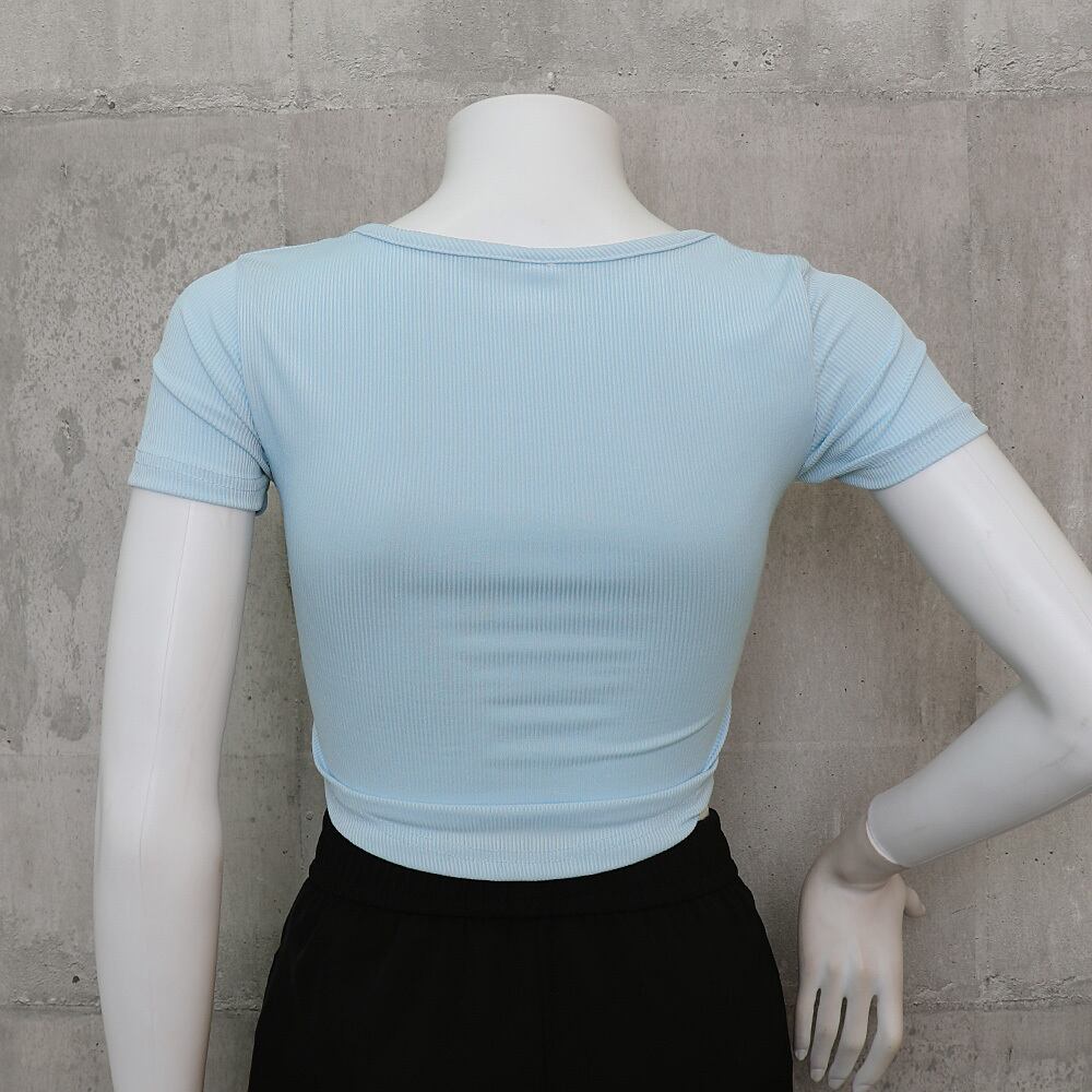 韓国風Uネックリブショートトップスです。