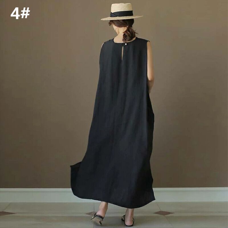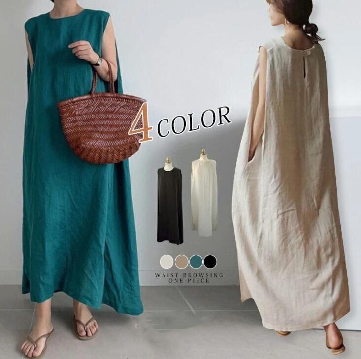 ワンピース レディース ロング丈ワンピース 韓国風 ノースリーブ 体型カバー カジュアル