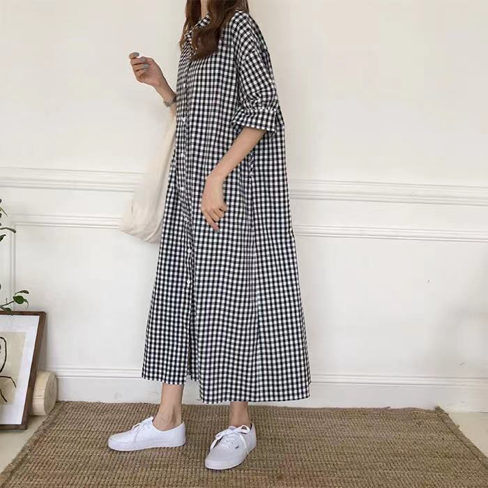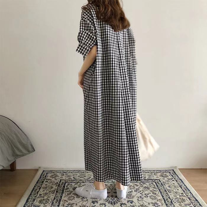 レディース ギンガムチェック シャツワンピ 体型カバー ブラウス ロング丈 半袖