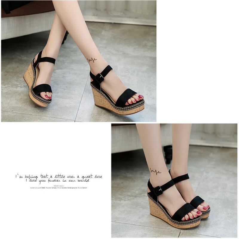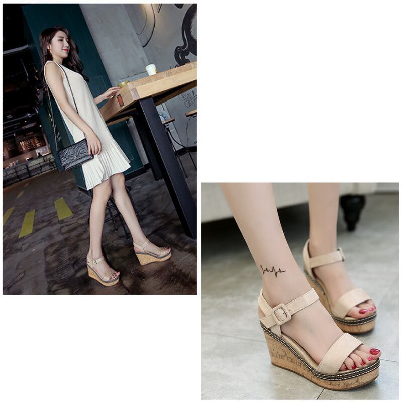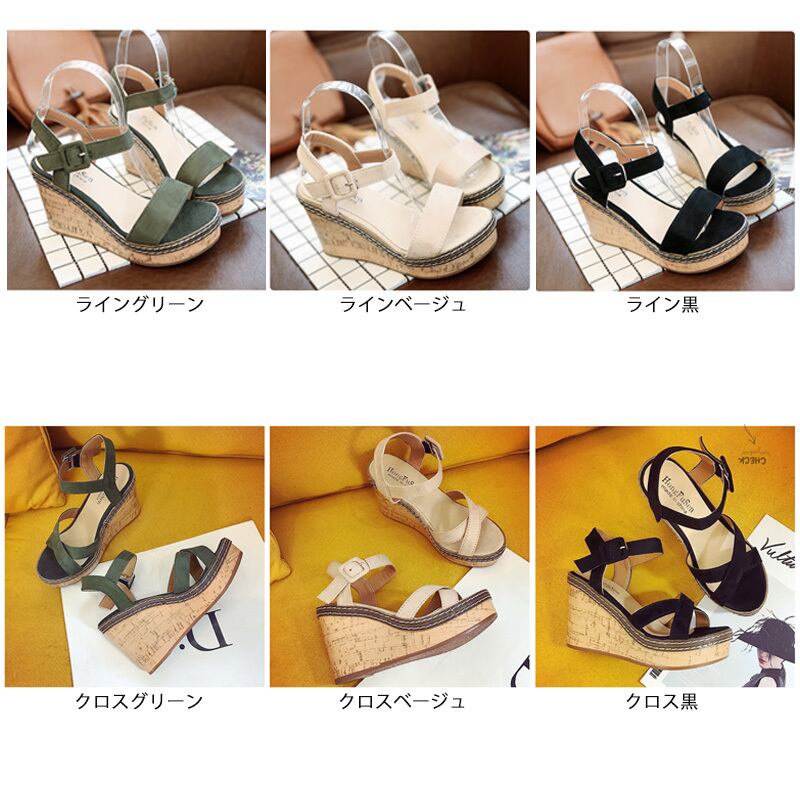 レディース サンダル オープントゥ 9cm クロス 美脚 脚長 歩きやすい ウェッジソール 厚底