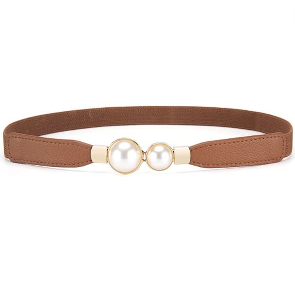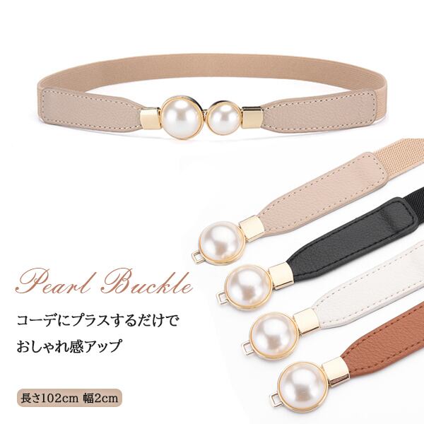 レディース バックルベルト パール ゴム仕様 シンプル 細め ウエストマーク