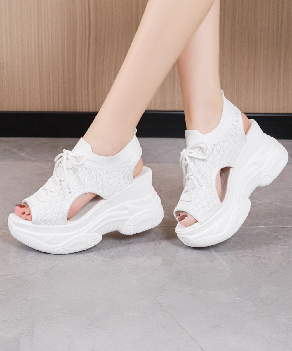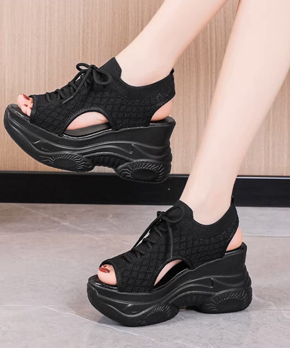 ボリュームソールサンダル レースアップ靴 歩きやすい痛くないスタイルアップ 韓国風サマーシューズオープントゥ 通気性軽量