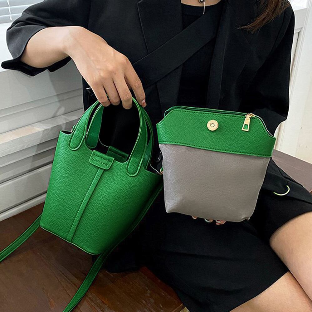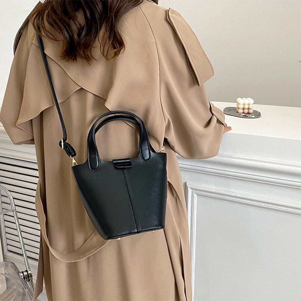小さめで持ち歩きやすいバケツ型PUレザーハンドバッグ