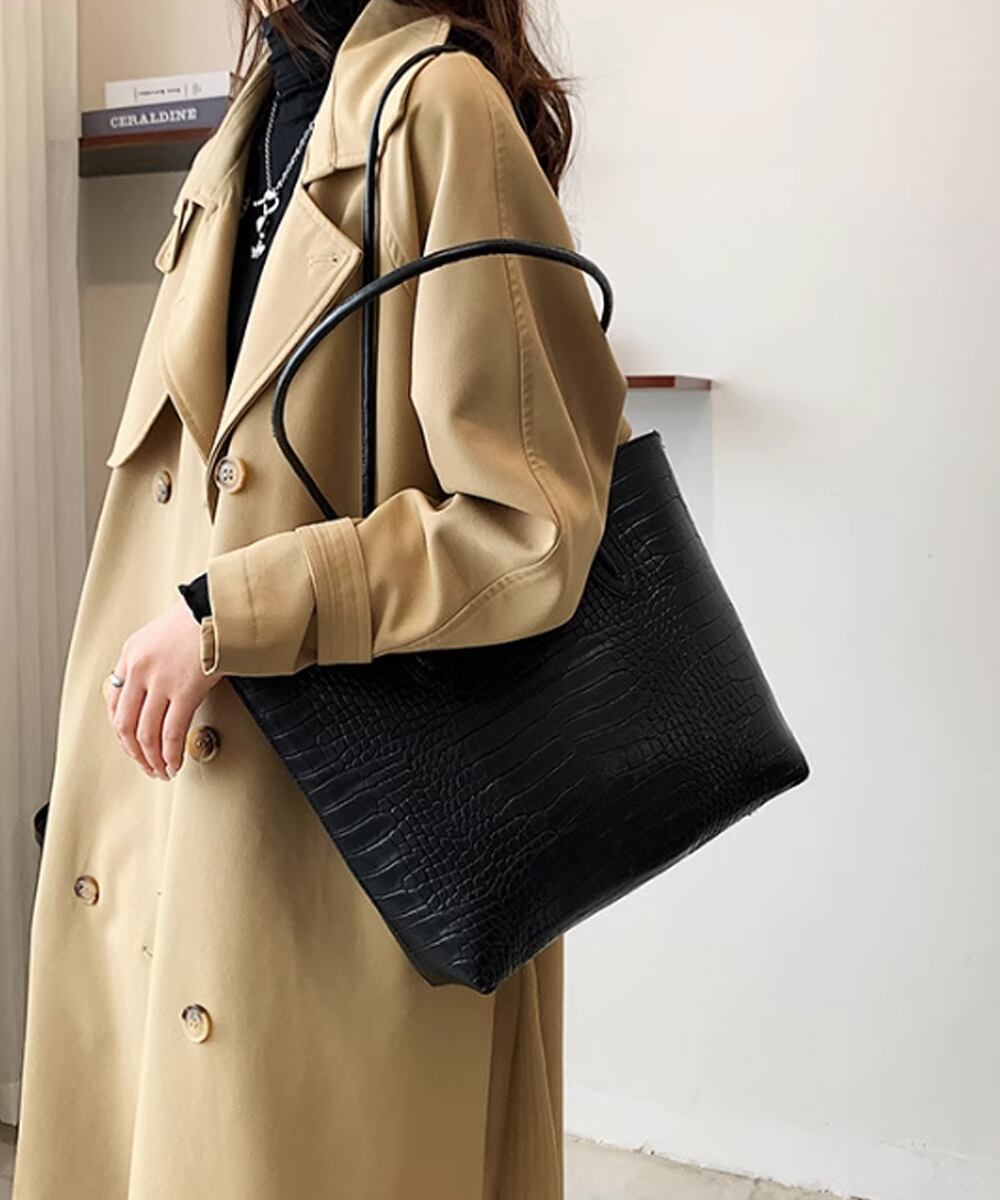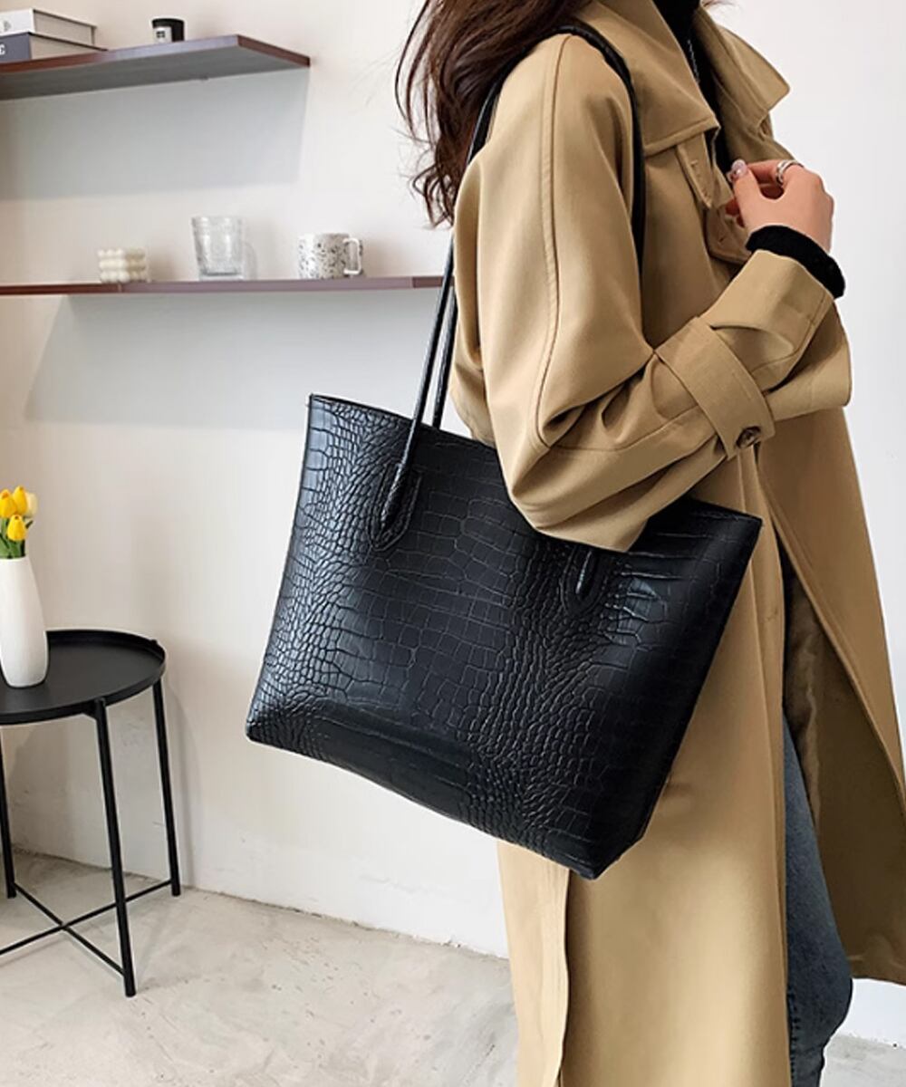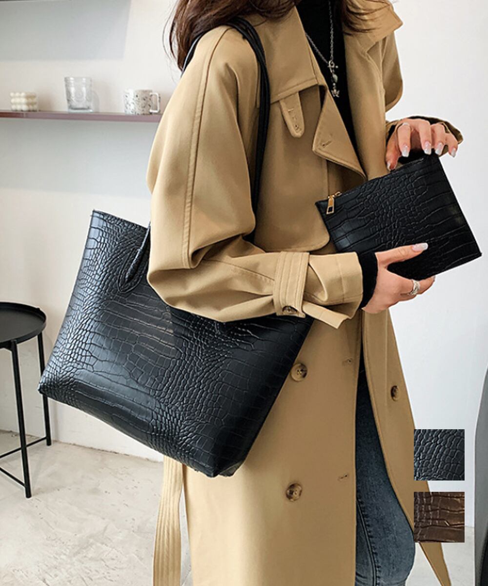 【日本倉庫即納】 クロコ型押し トートバッグ 2点セット
