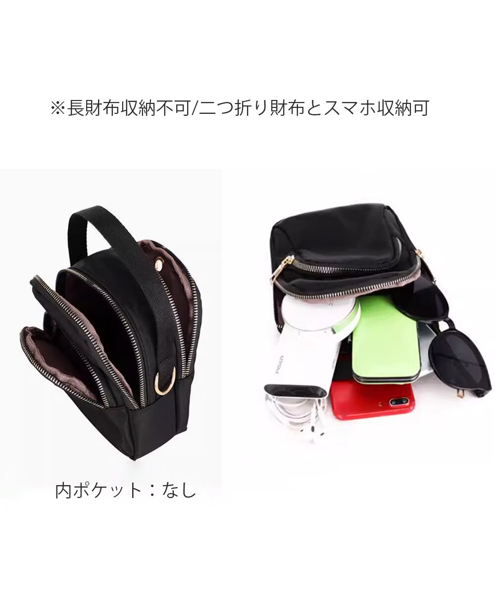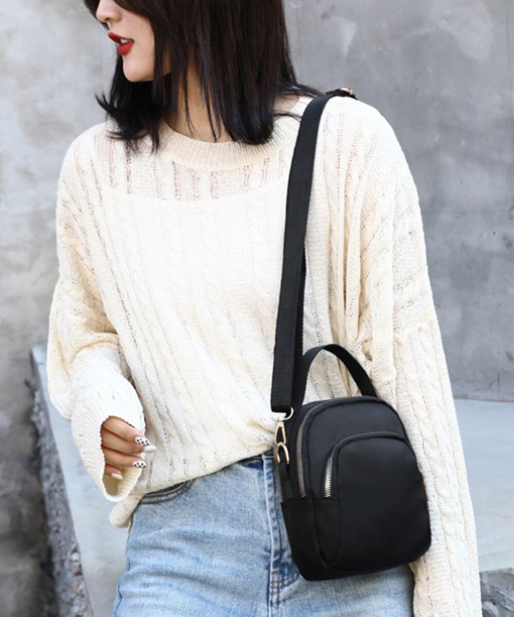 丈夫なナイロン生地を使用した、カジュアルなミニショルダーバッグ