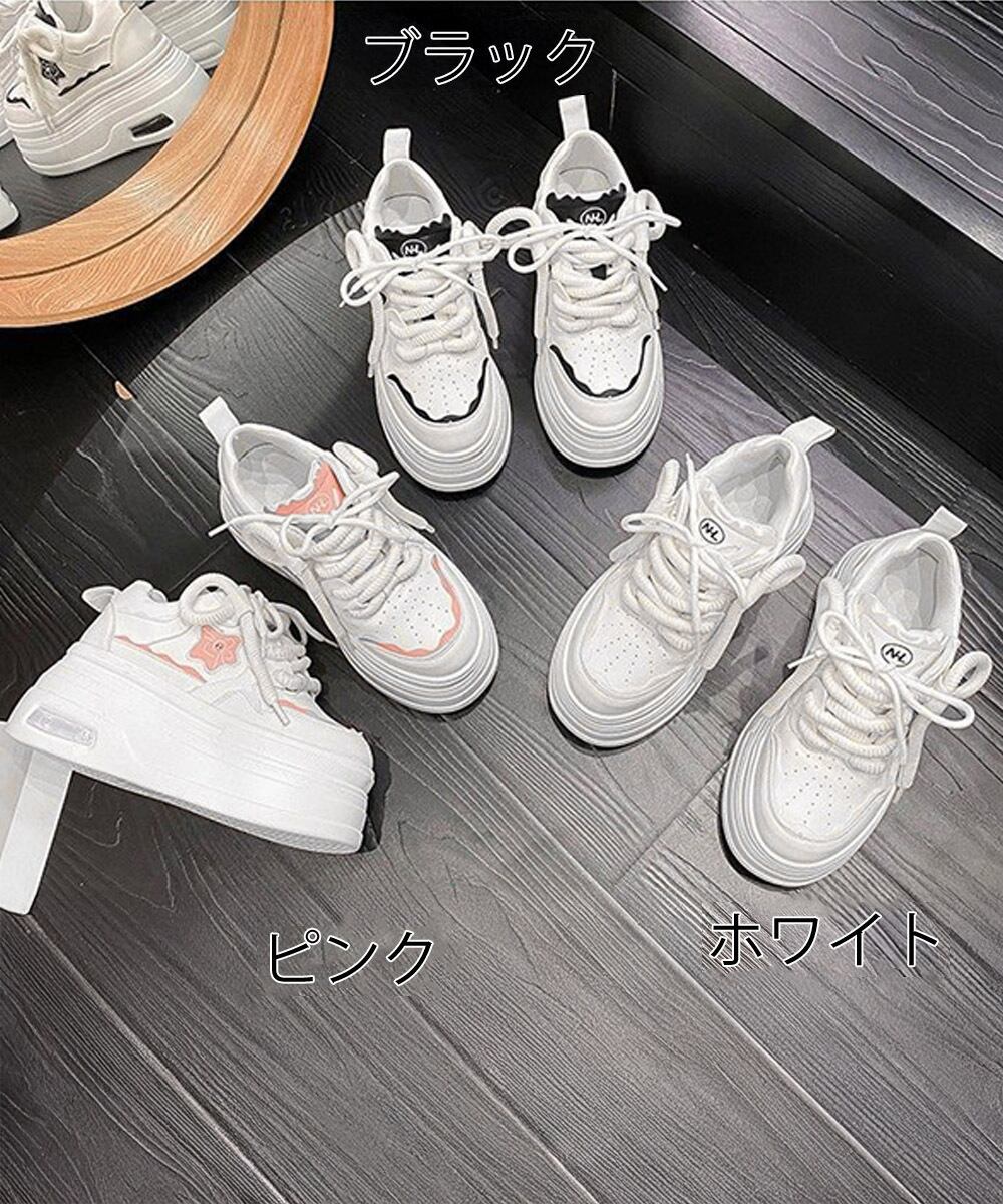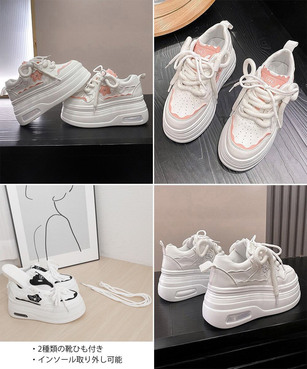 ホワイトスニーカー プラットフォーム靴 低身長さんシューズ