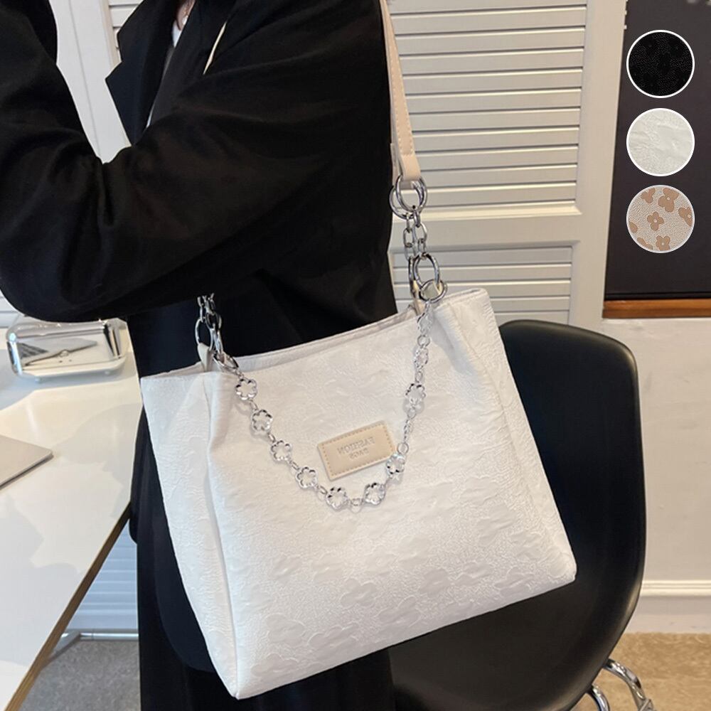 大人可愛らしいフラワーデザインの PUレザートートバック