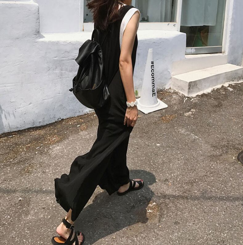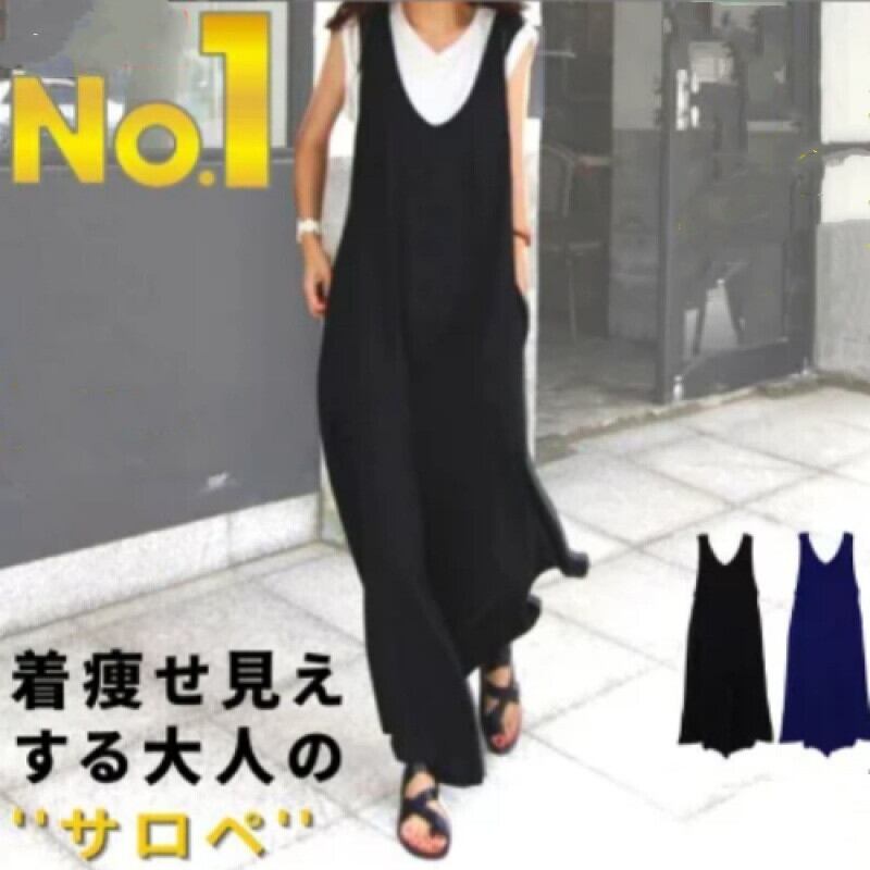 オールインワン サロペット ロングパンツ ノースリーブ ワイドパンツ 体型カバー 着回し INS大人気