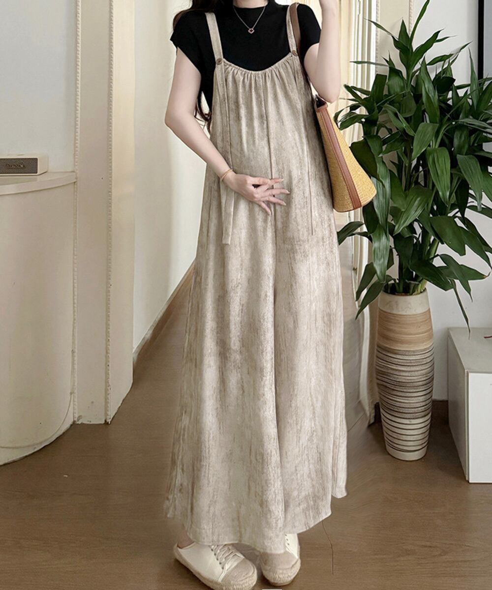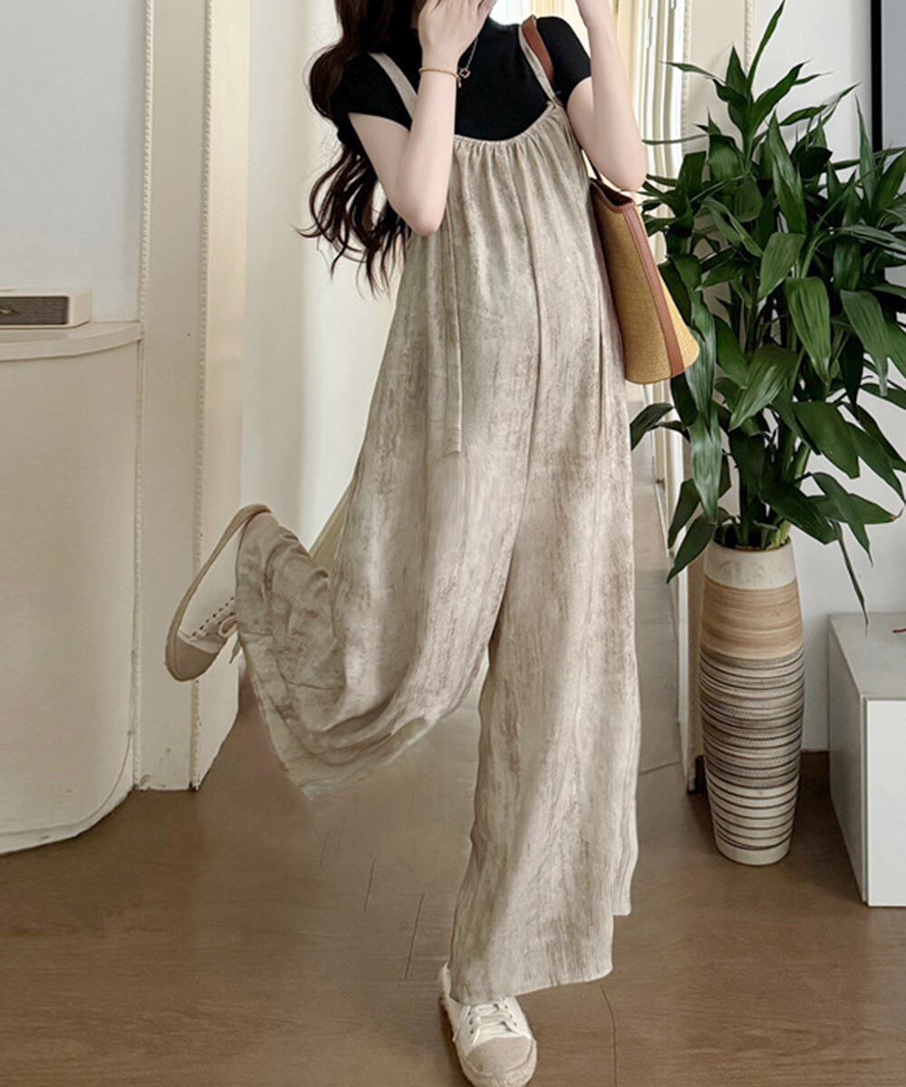 ワイドパンツ 体型カバー キャミサロペット 楽ちんオーバーオール お洒落 ガウチョパンツ 韓国風 マタニティウェア 無地