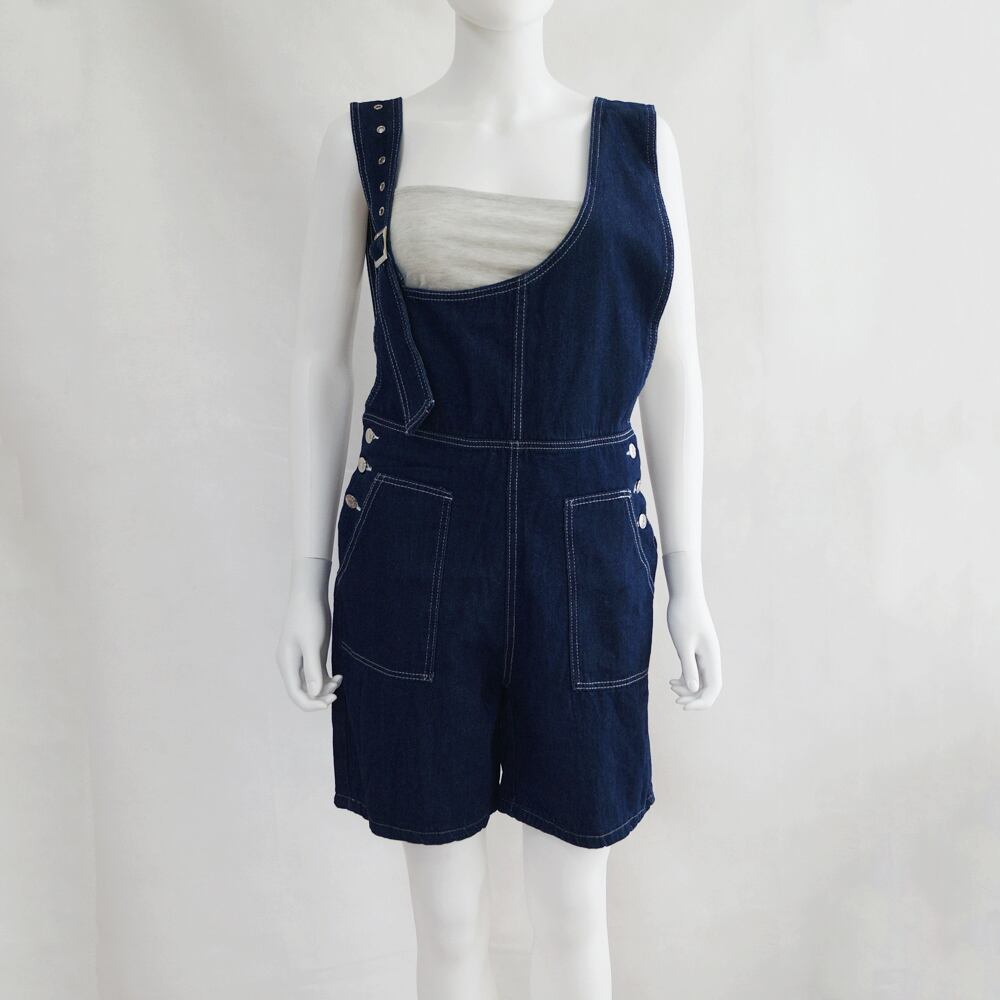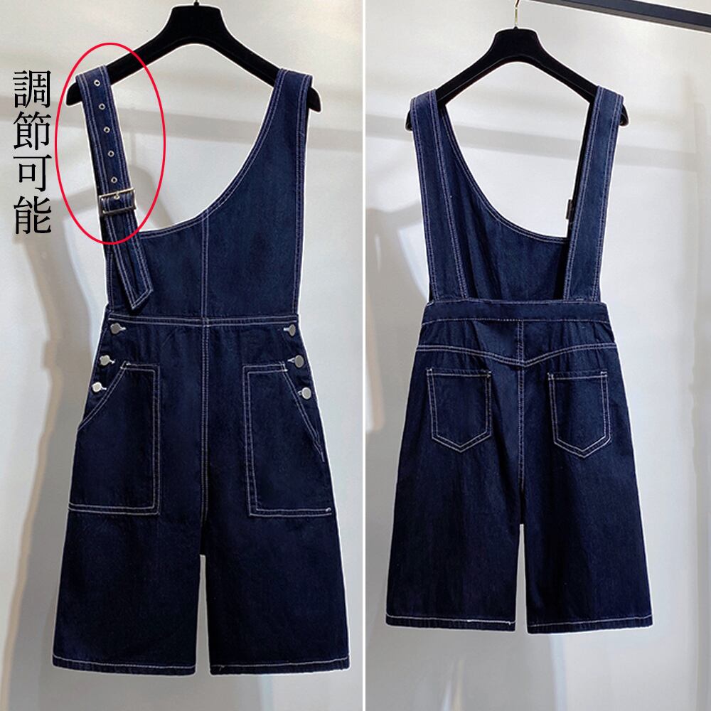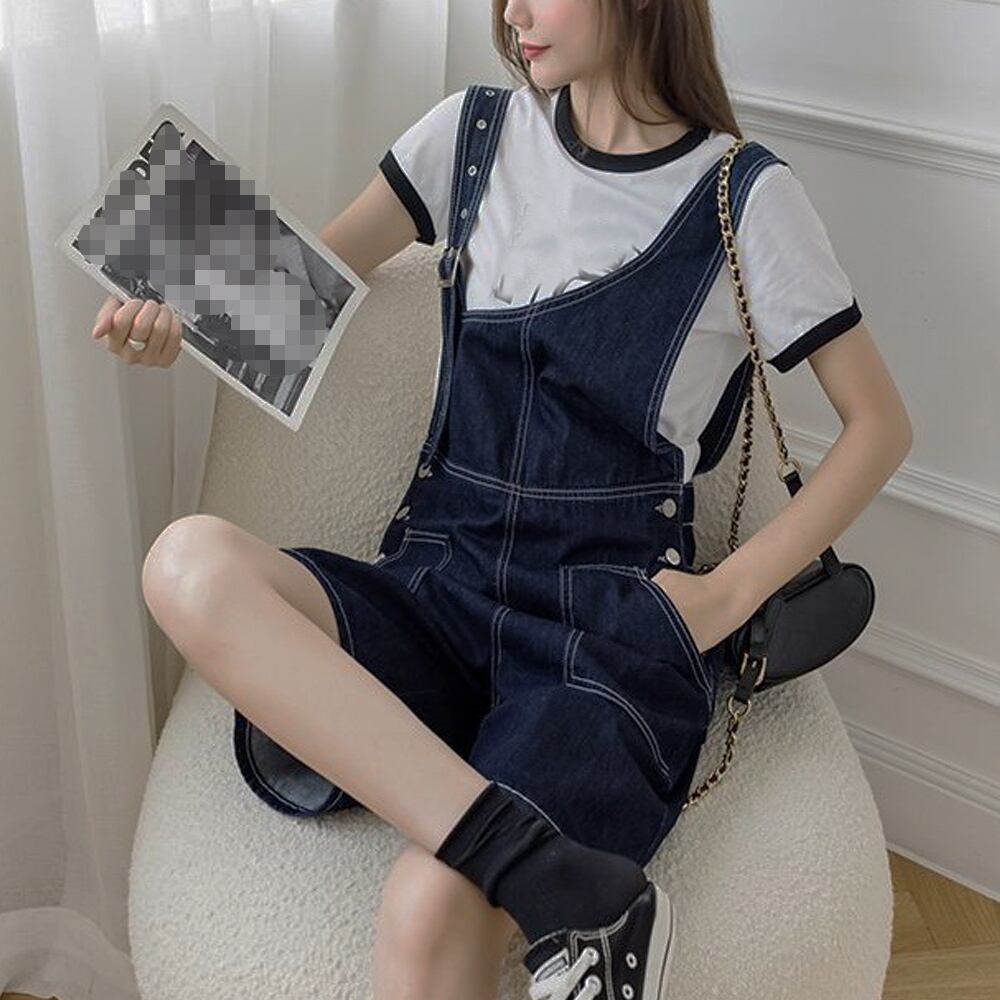オールインワン 無地 デニムパンツ ゆったり ショーパンサロペット 体型カバー オーバーオール