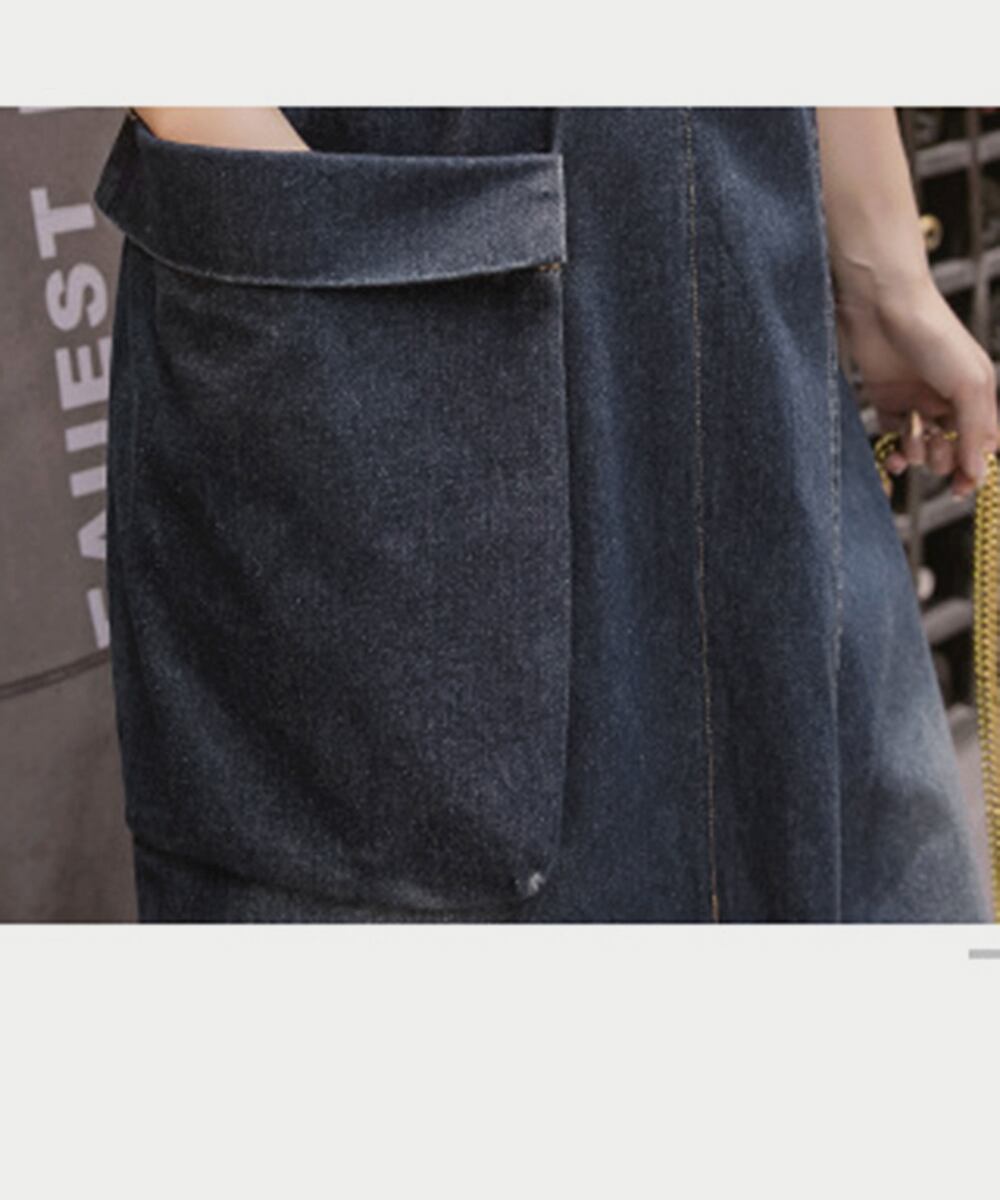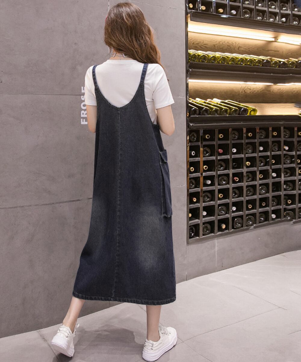 サロペット ロング丈 デニムワンピース ポケット付き レディース デニムスカート オールインワン マタニティ 体型カバー