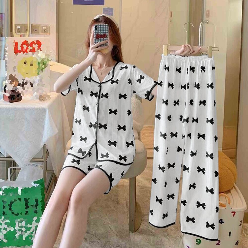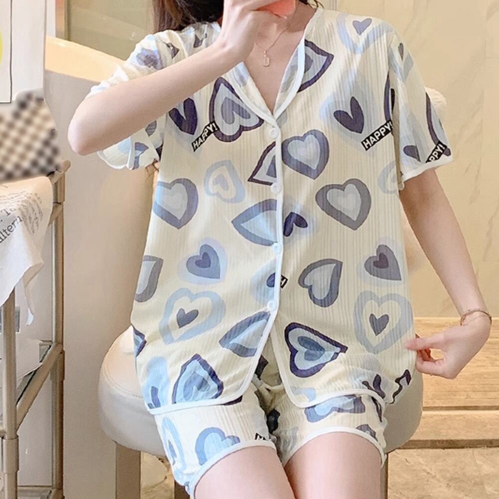 半袖 柄ルームウェア 上下セット 韓国 ショートパンツ 涼しい ロングパンツ 部屋着 セットアップ 入院 パジャマ前開き
