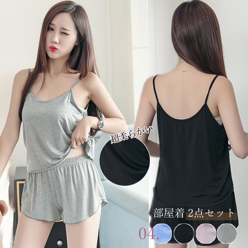 【日本倉庫即納】 ルームウエア レディース 部屋着 2点セット キャミソール ショーパン 柔らか