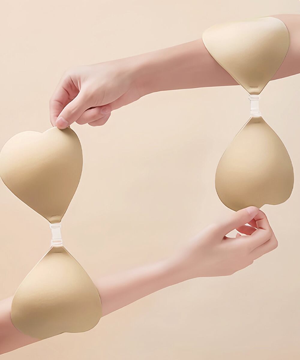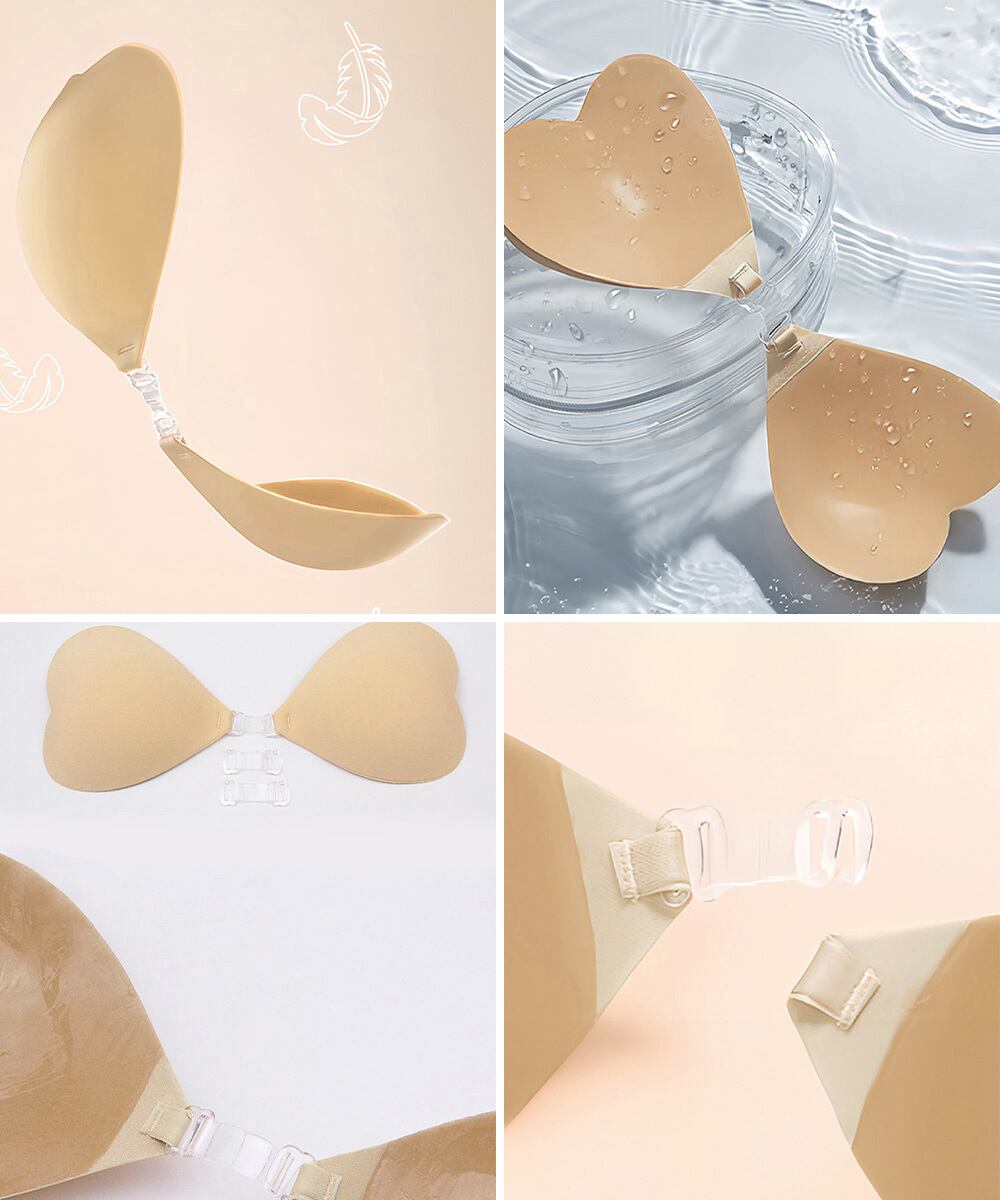 ハート型デザインが可愛らしい、ストラップレスのシリコンブラ