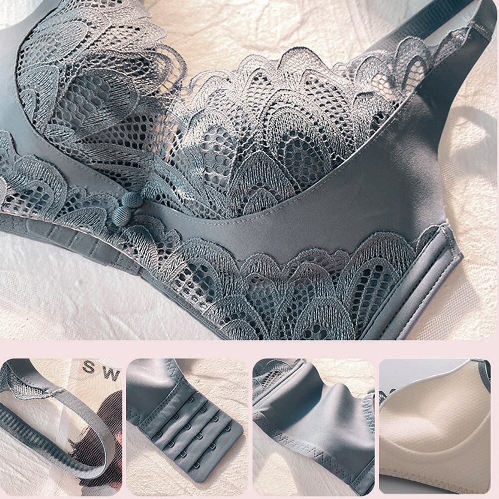 ブラジャーショーツセット バスト盛れる レースブラショーツセット 小胸超盛り ワイヤレスブラ 脇高 脇スッキリ 女性下着
