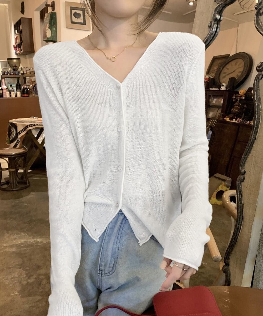 シンプルながら着回し力抜群のリブニットカーディガン。