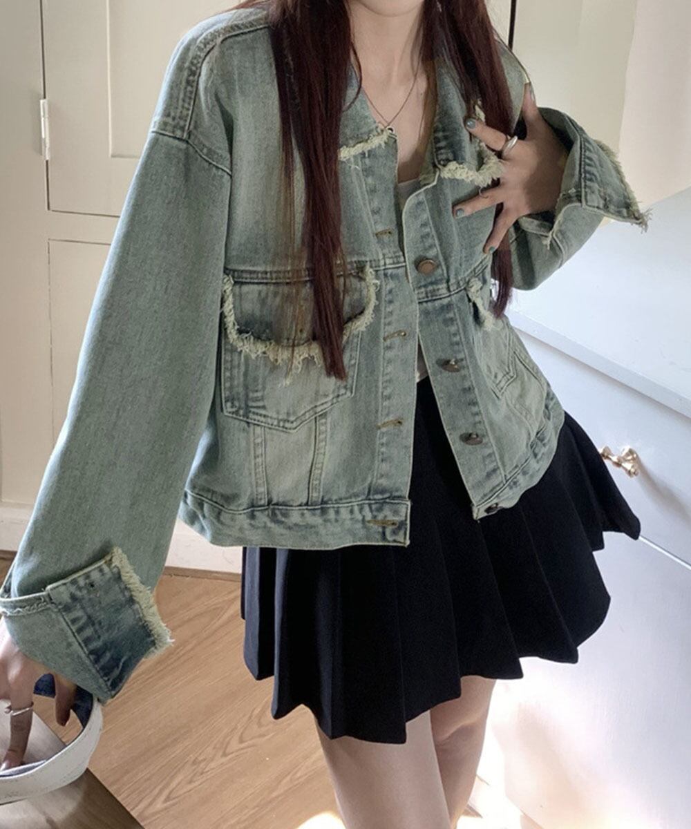 ジャケットゆったり/ジージャン 韓国風/色落ち加工 デニム