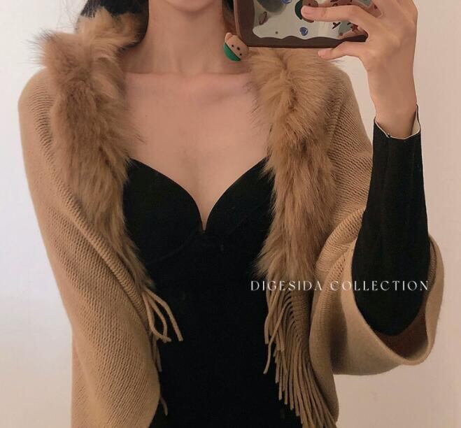 マント アウター 防寒 新年会 忘年会 お歳暮 デート着 ニット フェイクファー