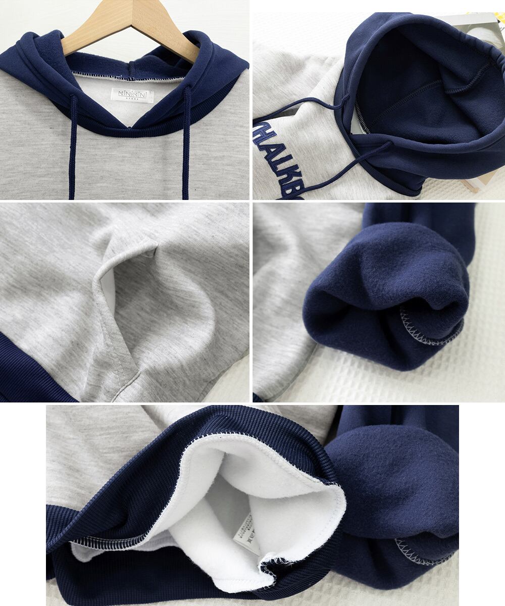 韓国風 フーディー フード付き スウェットトレーナー バイカラー 暖かいプルオーバー ゆったりロングパーカー おしゃれ