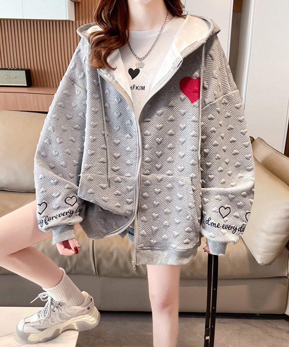 羽織り カジュアル ハート刺しゅうロゴ ストリート 着やせ
