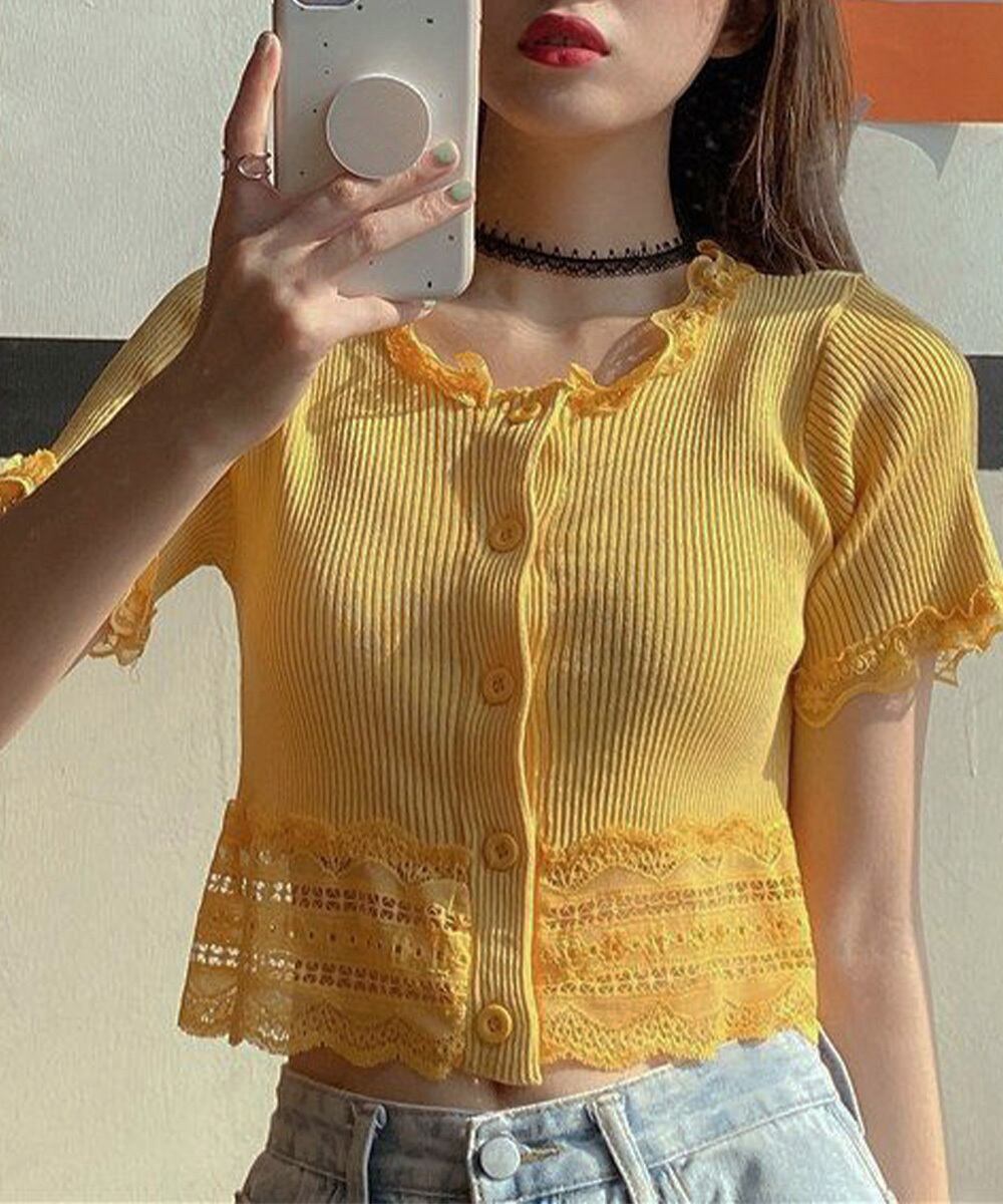 【日本倉庫即納】 フリルショートカーディガン レースニット