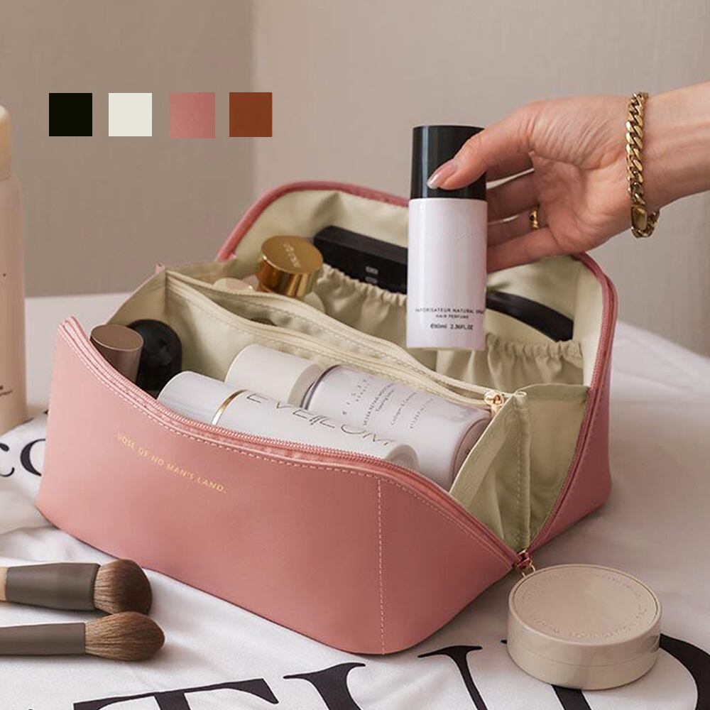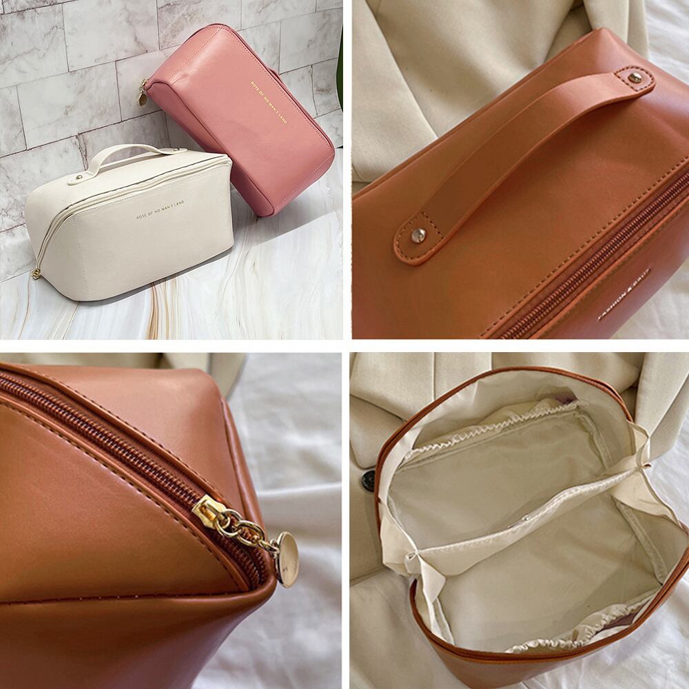 洗面道具・スキンケア用品・化粧品やメイク道具などを見やすく整理できるPUレザーメイクボックス