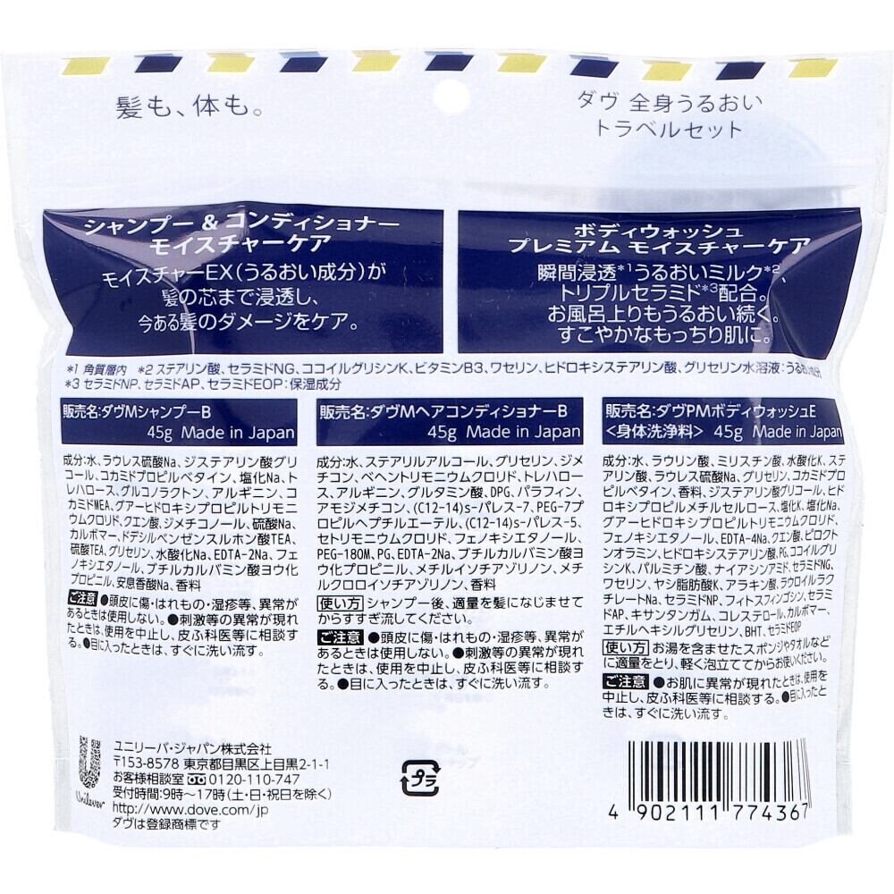 販売名: ダヴMシャンプーB 45g/ダヴMヘアコンディショナーB 45g/ダヴPMボディウォッシュE 45g