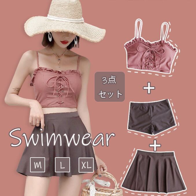 ビキニ 水着 プール 3点セット セクシー 体型カバー ショートパンツ パッド付き おしゃれ 可愛い