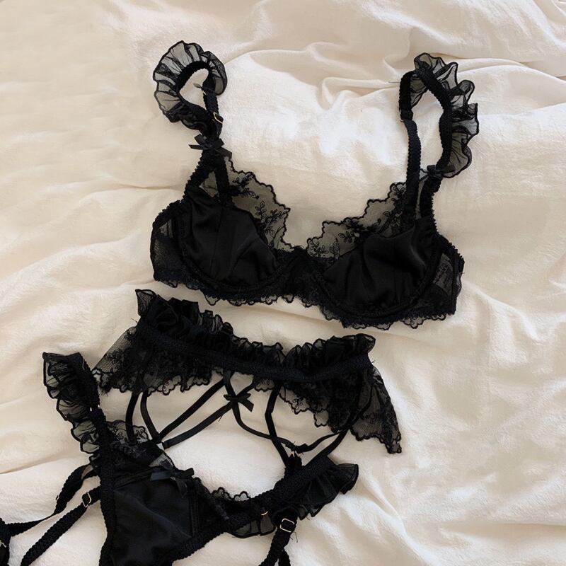 【即日出荷】2色 ガーターベルト付 ブラとショーツセット セクシーランジェリー【3759】
